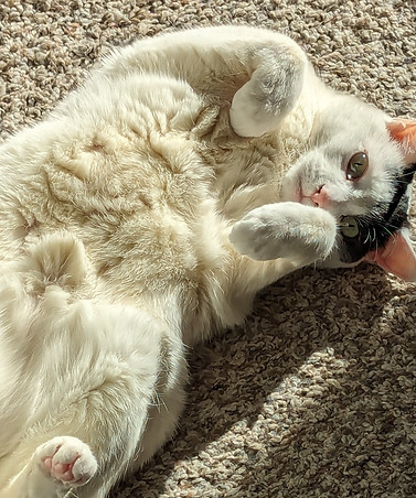 I’m a cat dad. My boys are Pepper and Twix, and they’ve lived with me about twelve years. They were about 4-6 months old when I adopted them. I’m also Chia’s cat dad, and she visits me and the boys throughout the year, sometimes for weeks. They all remember each other, and their cuddles are the best!